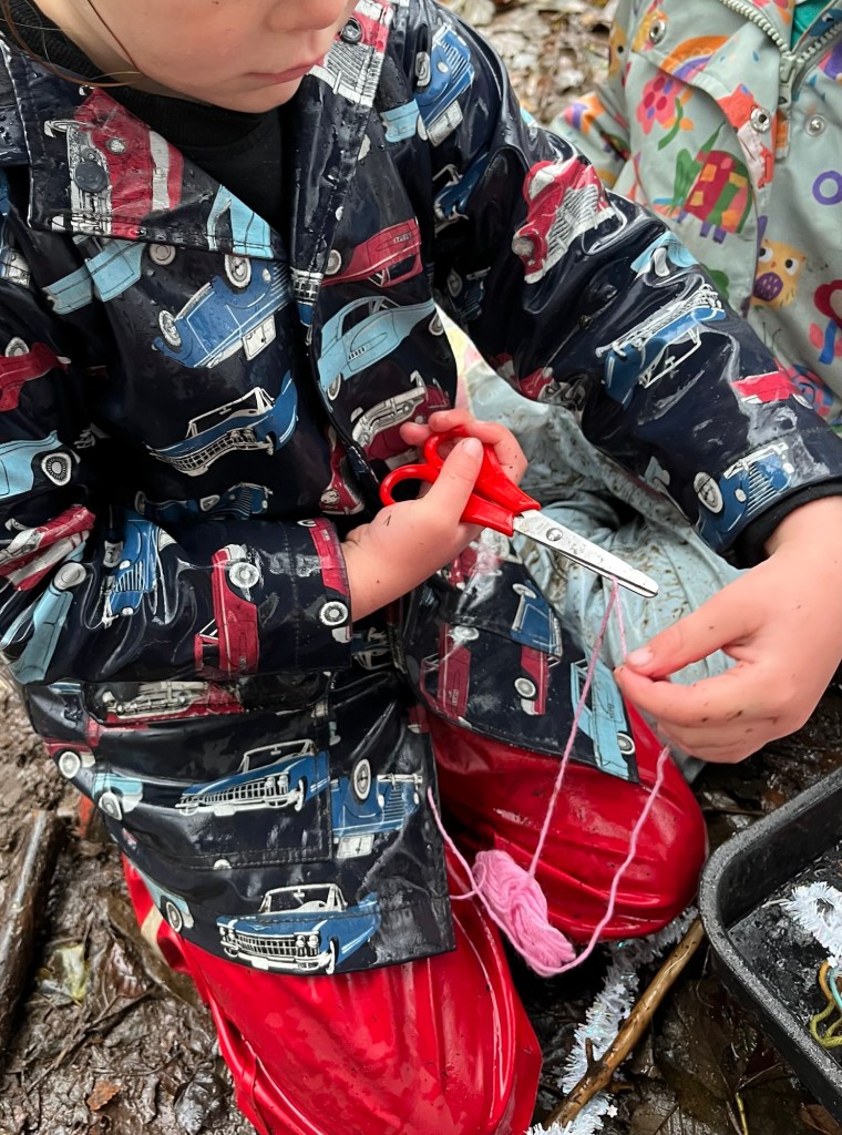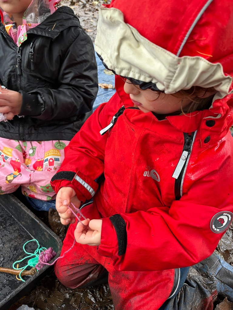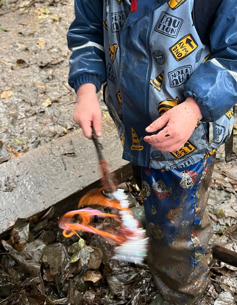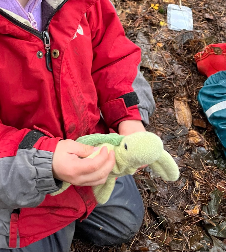 The recent wet and windy weather has meant that many of our visits to the woods and time in the nursery garden have been spent jumping in mud and splashing in puddles, as well as enjoying familiar stories, songs and games.
