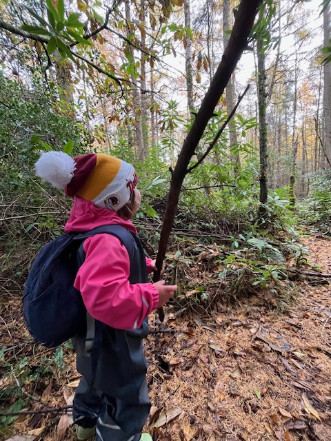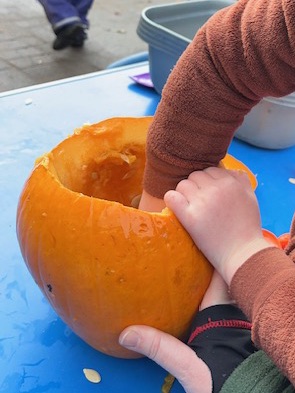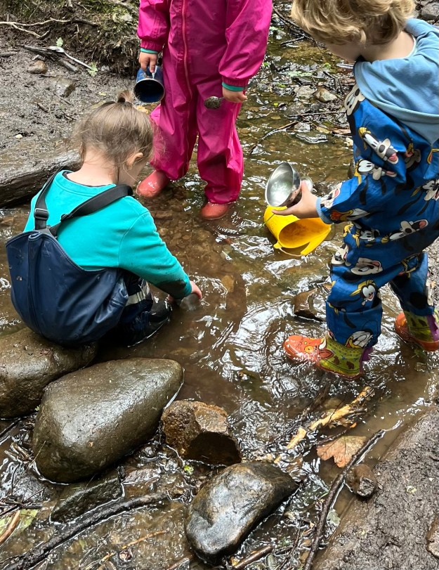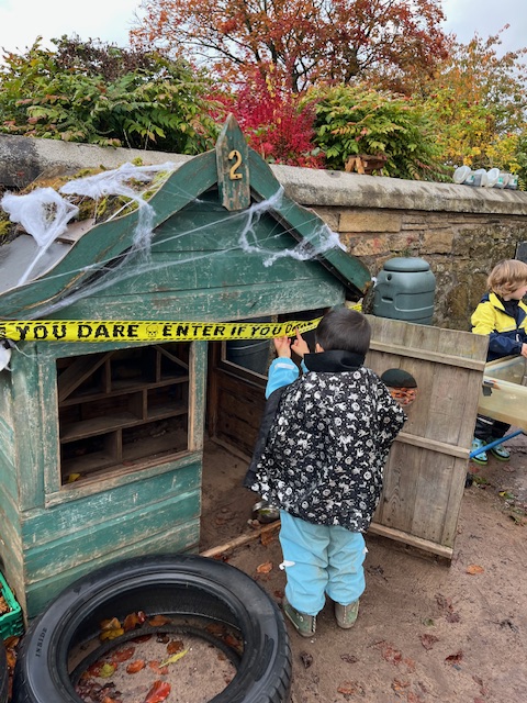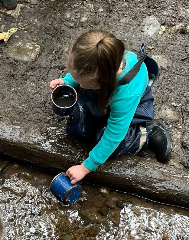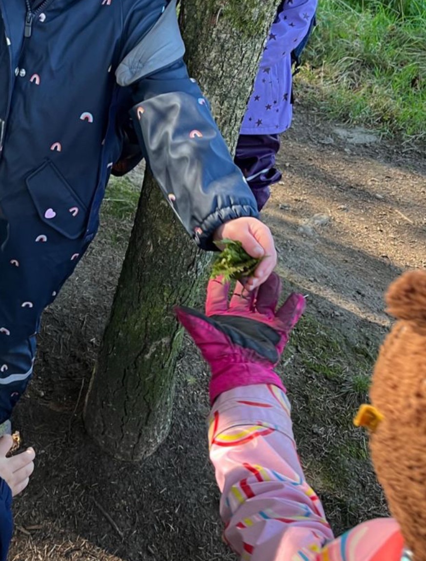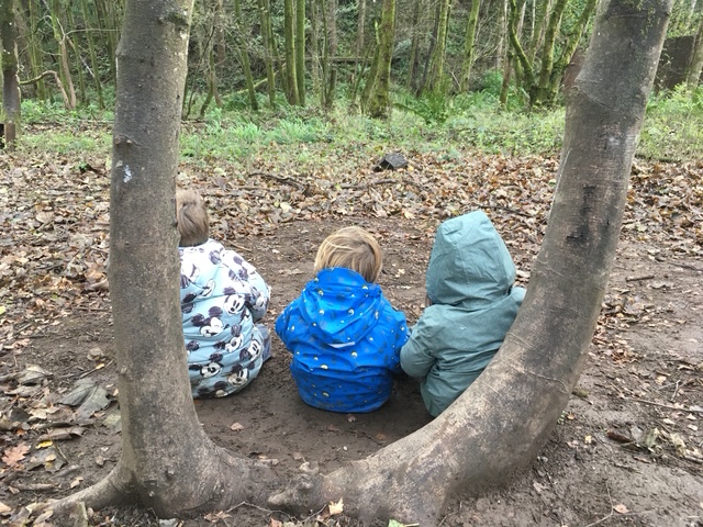The recent wet and windy weather has meant that many of our visits to the woods and time in the nursery garden have been spent jumping in mud and splashing in puddles, as well as enjoying familiar stories, songs and games.