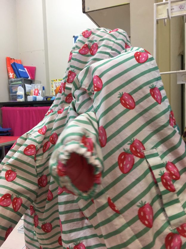We like to be outside as much as we can at playgroup but getting 10+ young children dressed to go outside in a Scottish climate can be time consuming. Getting dressed and managing their own clothing is a skill we want to develop and encourage in our children. Consequently we’ve been practising getting our own jackets on when we go outside to play using this slip and flip technique. Lovely to see the satisfaction on our children’s faces when they can put their own jackets on.