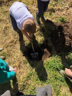 We’ve also begun developing a space within the Walled Garden and have planted 15 fruit trees (apples, pear, plums and cherries). We are now working on a raised bed and, when the unseasonal but Scottish cold and wintry May weather leaves, we will be sowing some seeds and planting out some vegetables (we have courgettes, pumpkins and sunflowers ready and waiting).
