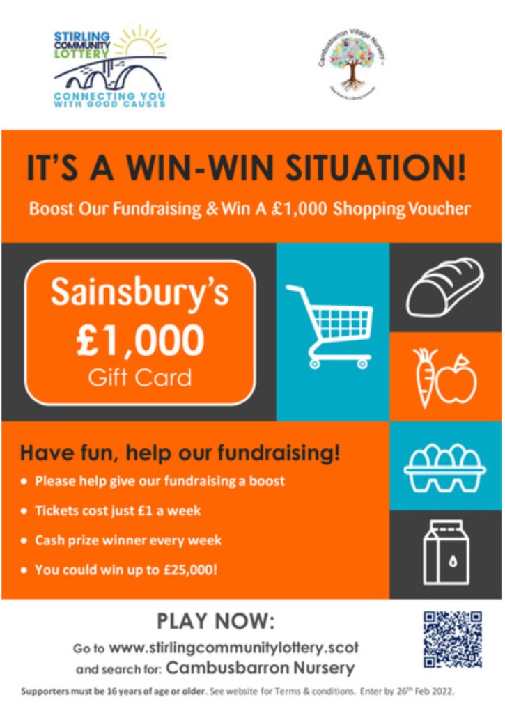 Do you play the Stirling Community Lottery? Its a great way to support local good causes like CVN as well as giving you a chance to win some great prizes. Please choose CVN as your good cause – just follow the links below or use the QR code.