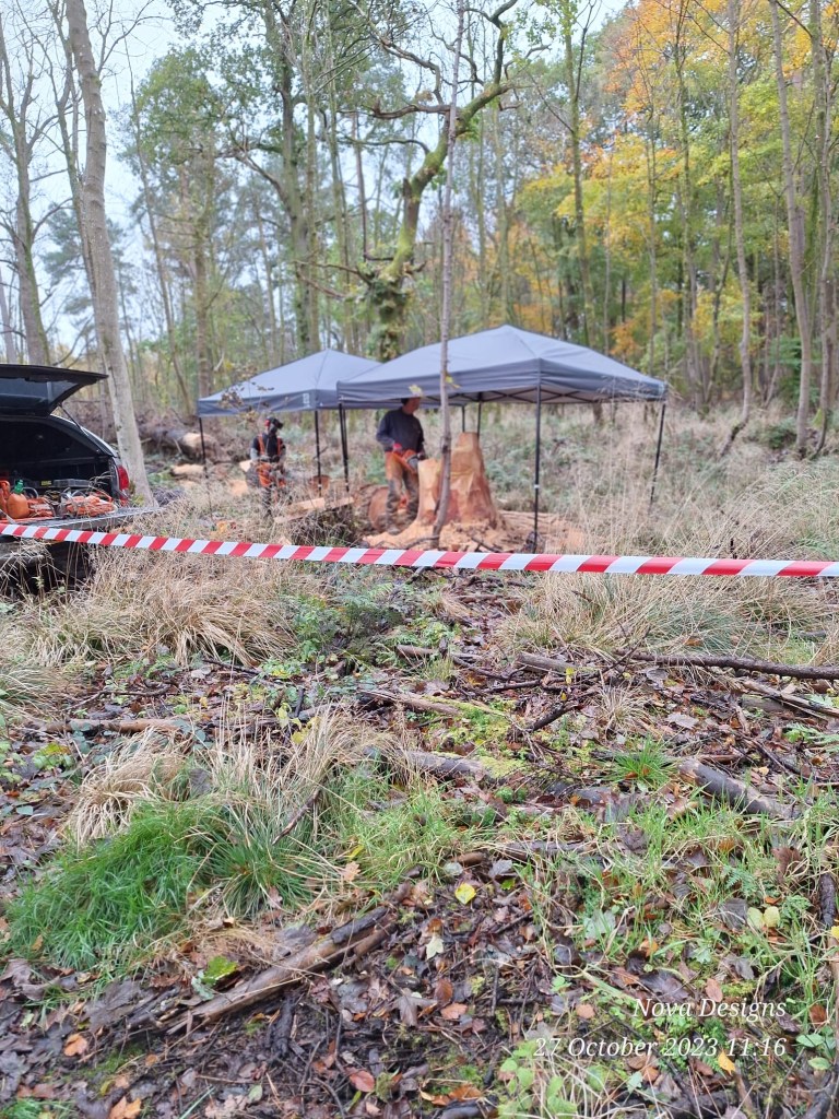 We took a walk round the woods today to see Pete and Steeley at work chainsaw carving in the woods.