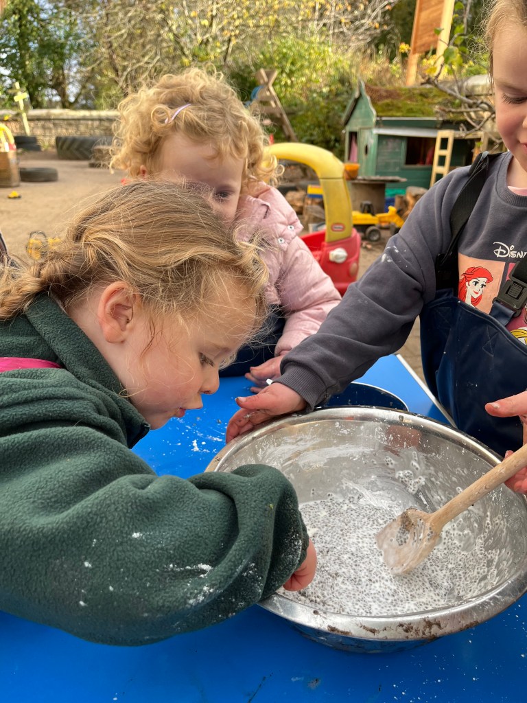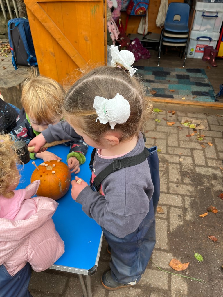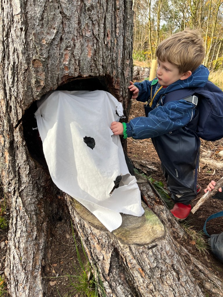We celebrated Hallowe’en with pumpkin soup, ghoulish slime, pumpkin bashing, spider webs and other spooky things in the woods!