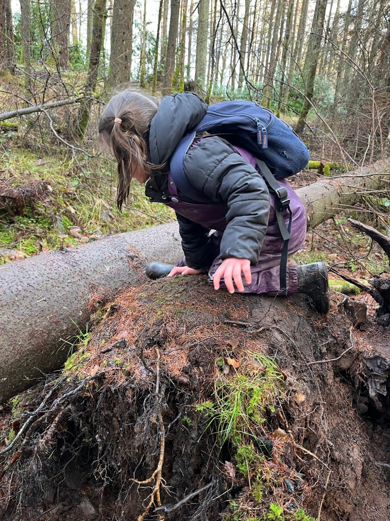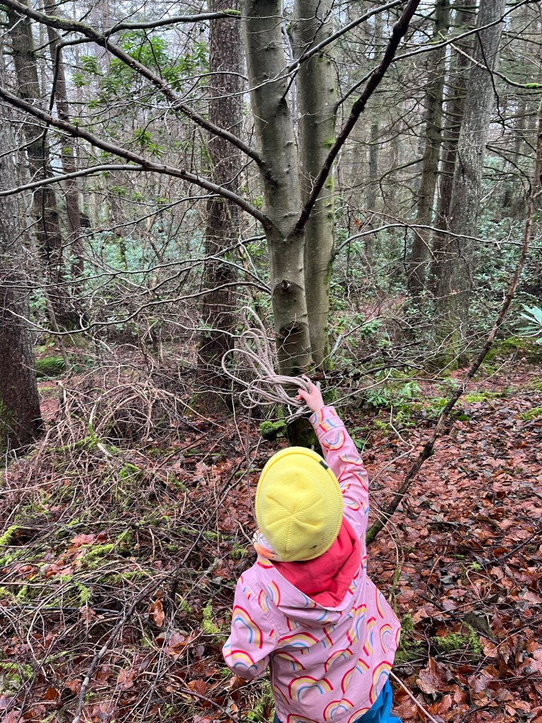 There has been balancing and climbing on fallen logs, careful exploration of icy and muddy ground, working together with ropes, and taking time to notice and investigate frost, ice, and snow in all its forms.