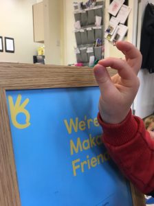 Although Makaton had been in use before at playgroup it is now much more embedded in our daily routines. Our children love signing and are always keen to show off their skills. We sign our names at Welcome Time and parents, staff and children all learn the Sign of the Week and promote it more widely within our community. Last Christmas we learned how to sign Christmas carols and went carol singing and signing in a local supermarket. We have received very positive feedback from parents and its rewarding to hear reports of children teaching their parents and siblings how to sign.