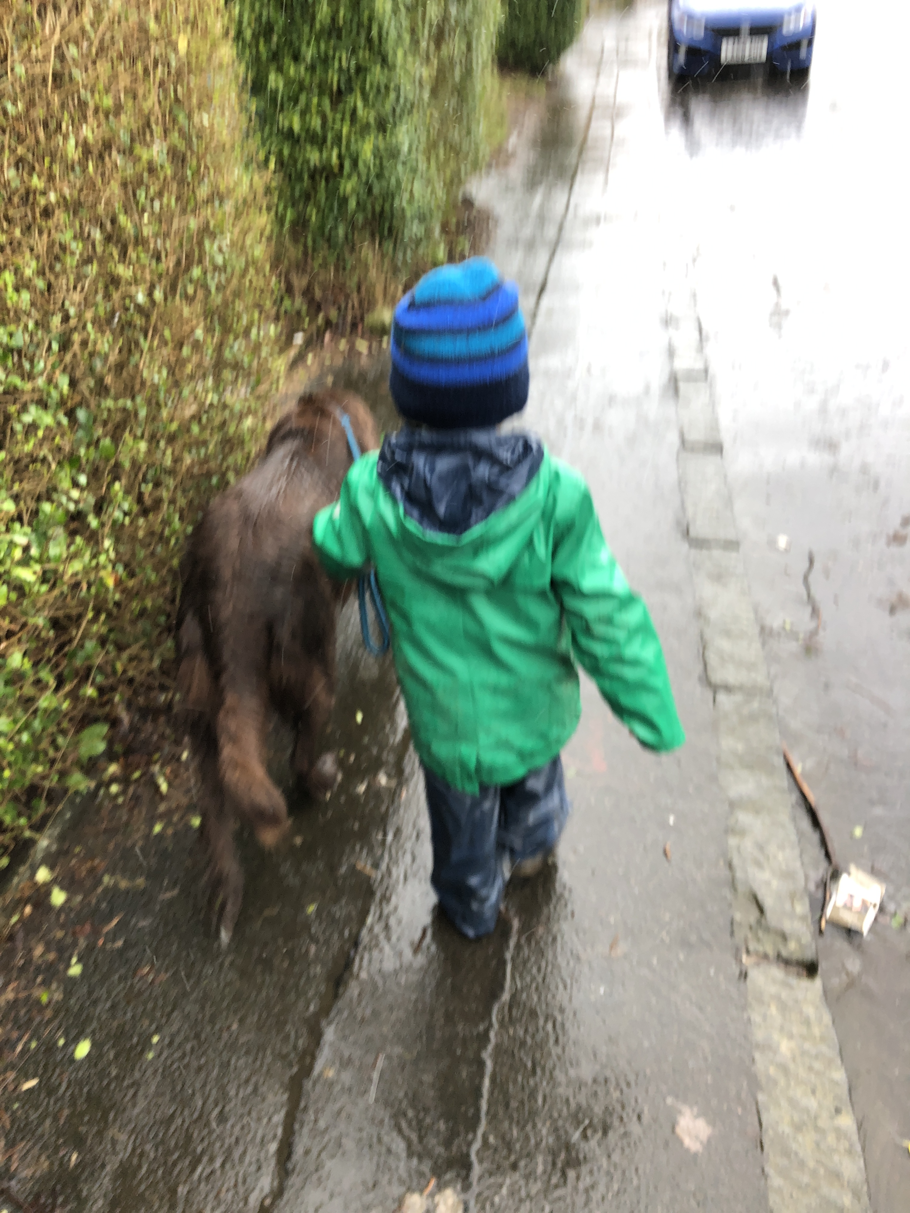 The definition of a puddle : a small body of water that attracts children