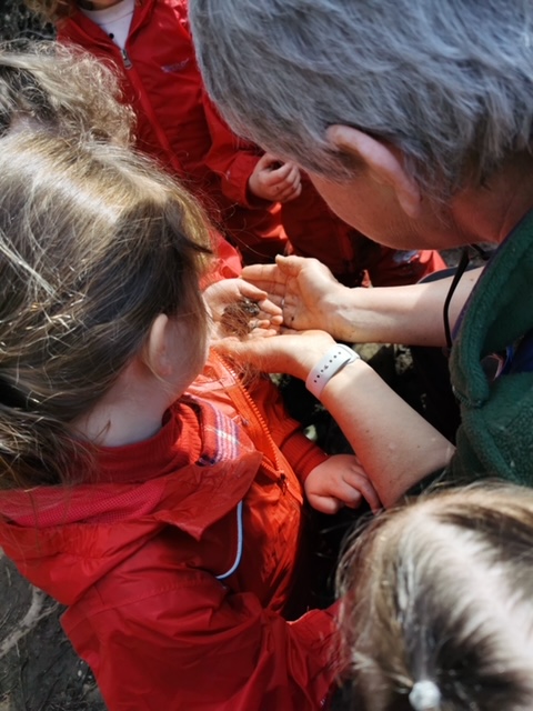 We spent this morning in Gillies Hill Community Woodland tapping birch trees and harvesting birch sap with Amos. This was a fantastic opportunity for our children to learn about the changes spring brings to the woods and also to understand more about different types of trees and how to identify birch trees by their distinctive silvery white bark. Amos showed us how he drilled a small hole in the tree to let the sap come out and we watched as it started to drip. The children were so excited that they wanted to try catching the sap on their tongues and told us it tasted amazing!