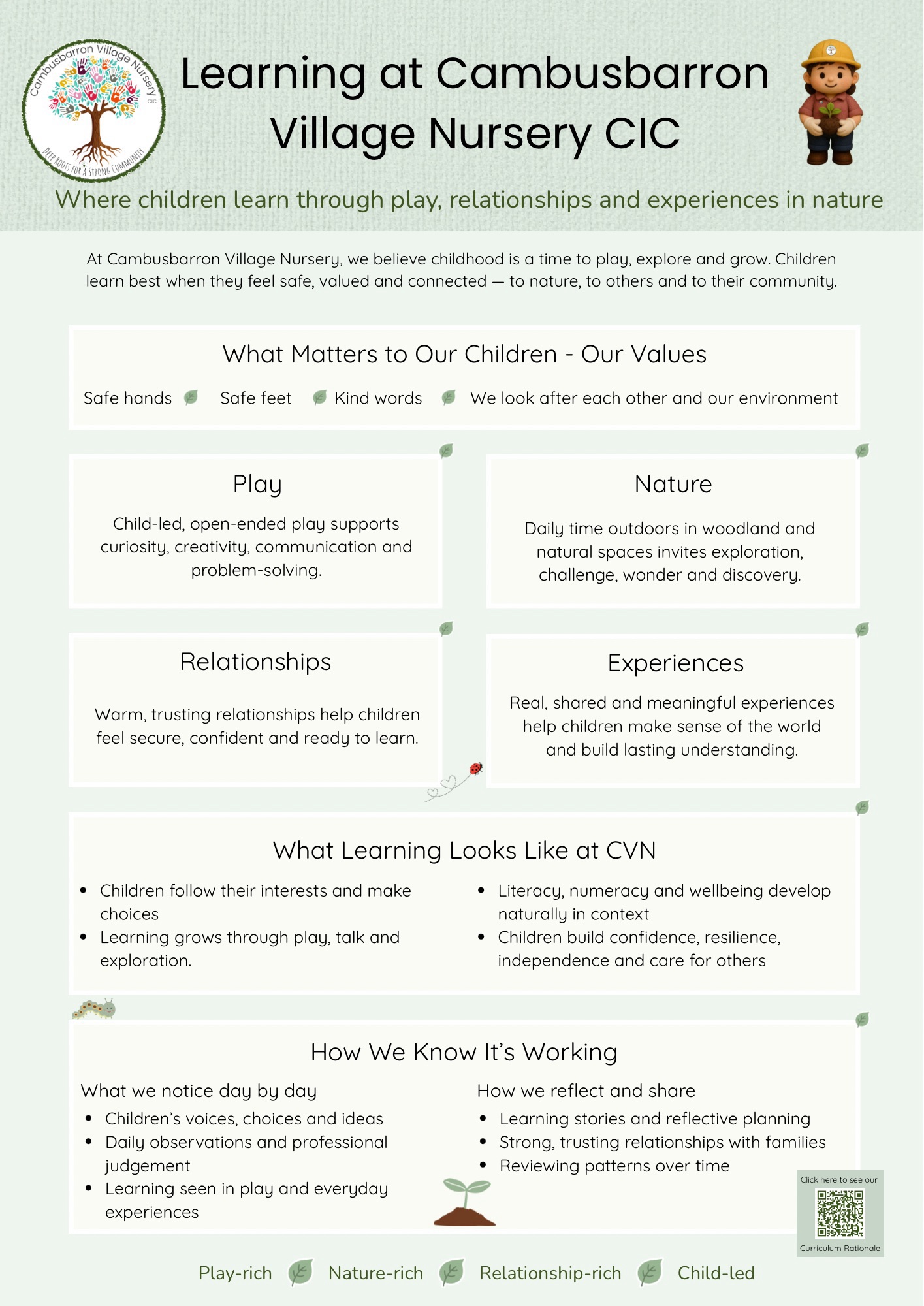 Our Curriculum Rationale explains how children learn at CVN, what shapes our approach, and how we understand and evidence learning and wellbeing in our woodland setting. Click here to read the full Curriculum Rationale.