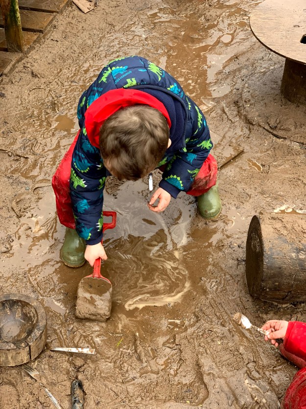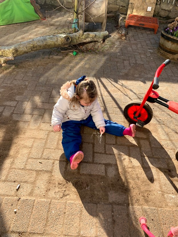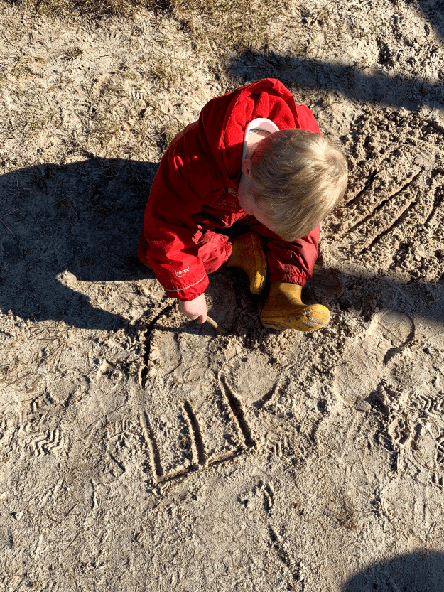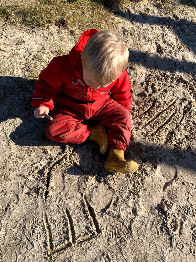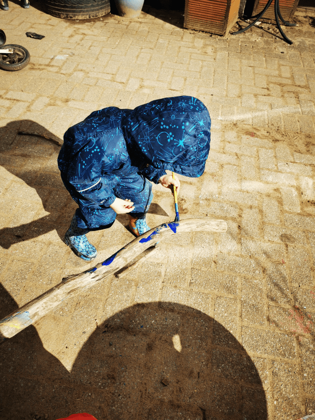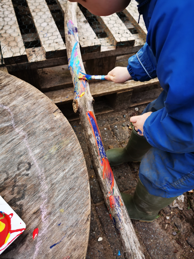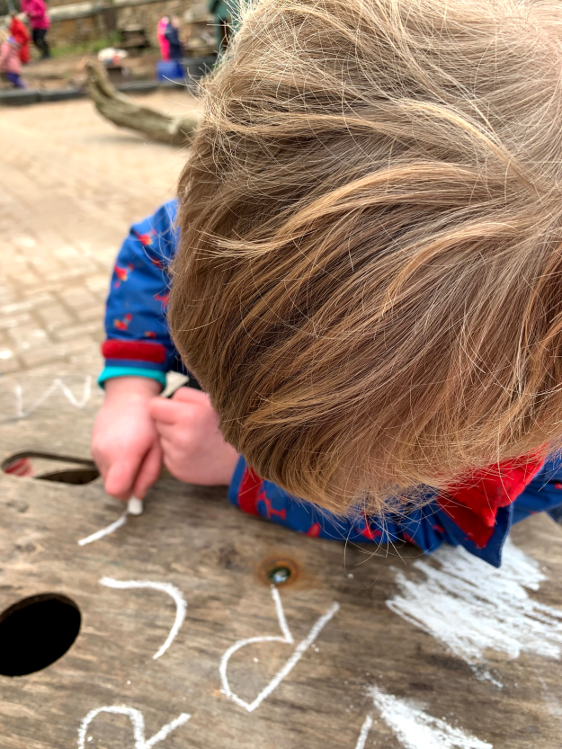 We had an important job to do today in the woods, and, for the adults, a significant one. Today, we labelled the trees on our site so they could be points of reference for future work. This was the first proper marking of our site, and although there is a long, long way to go, we now have a visible and obvious mark of our intent. The children chose to label their favourite climbing tree number 1 (technically it is 0001) and then worked with great perseverance and dedication to label other surrounding trees. It was so fitting that our children could not only take part but lead in this big step towards developing our woodland nursery.