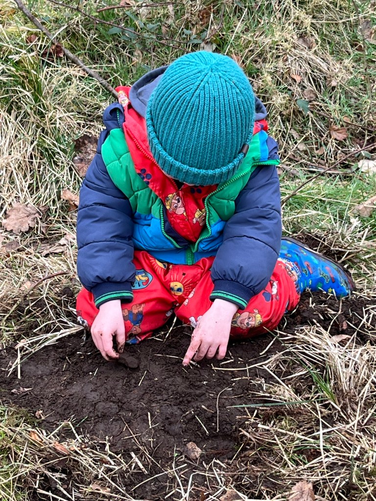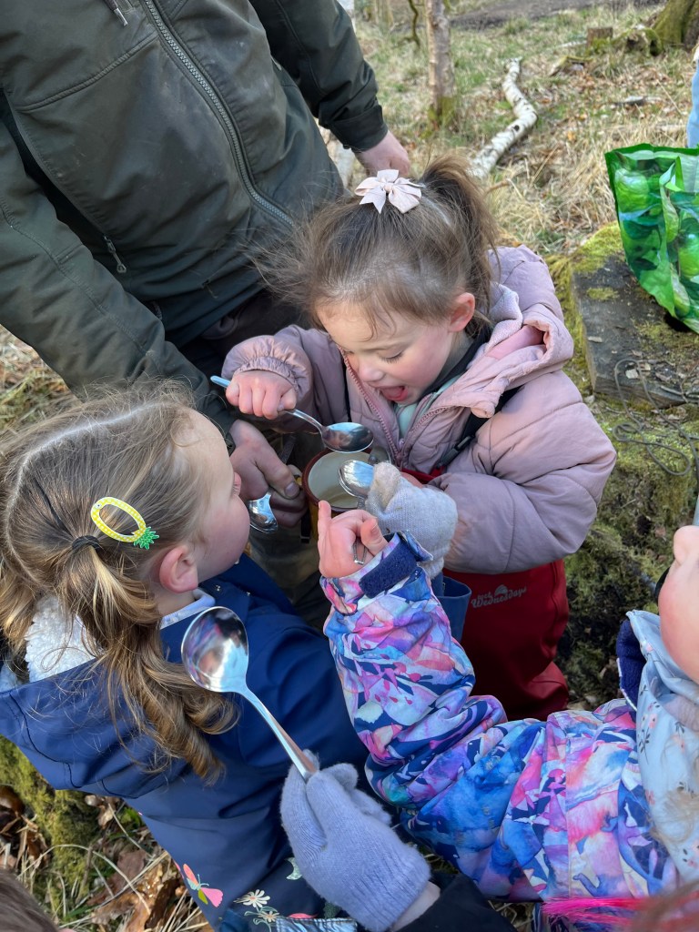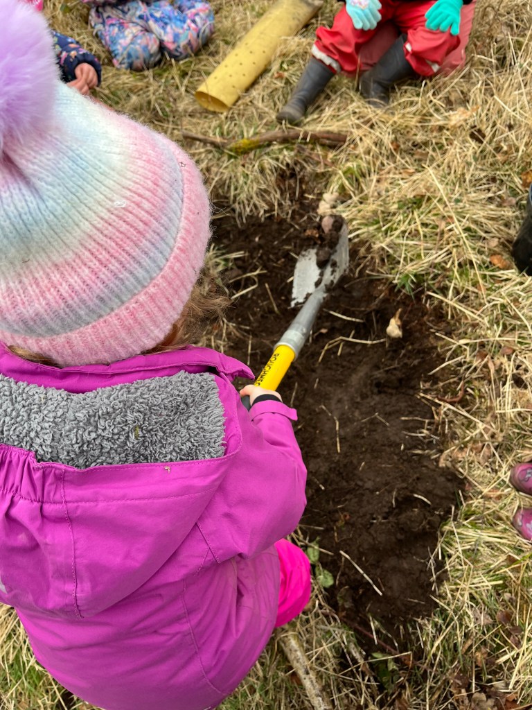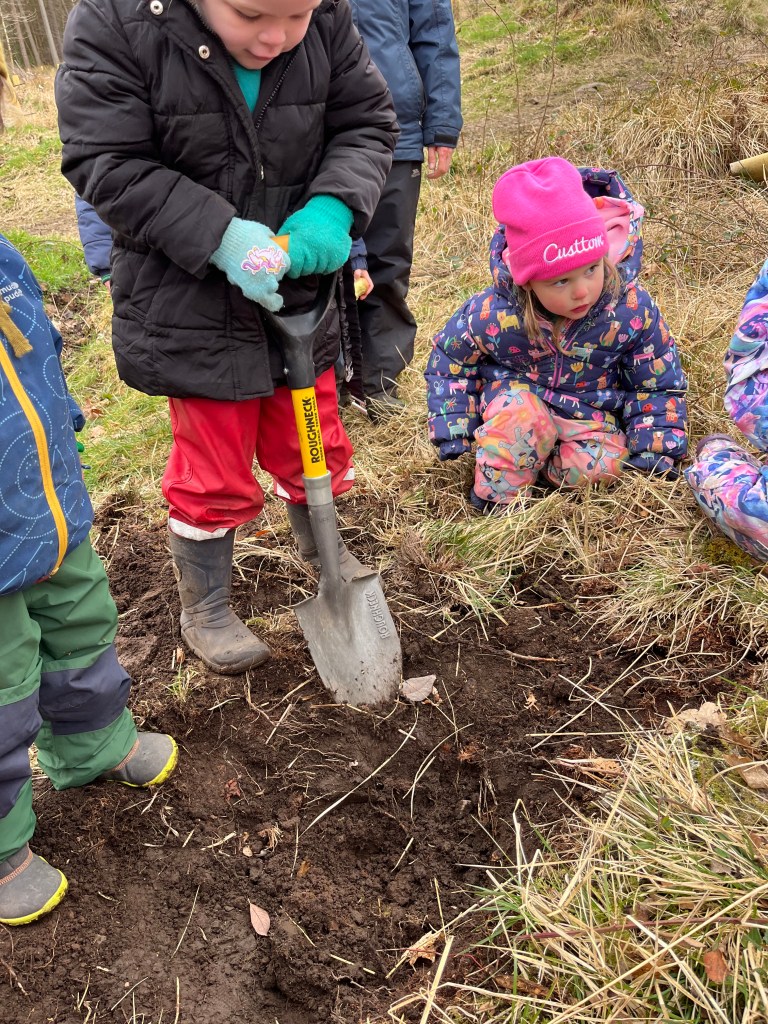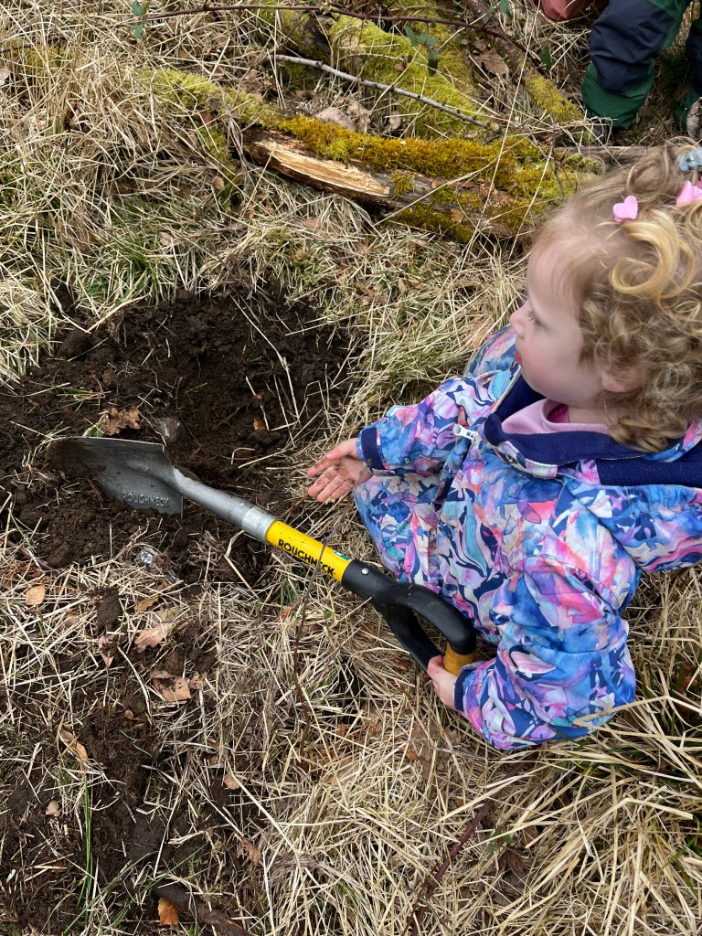 There’s a strong social and cognitive dimension to this kind of play as well. Research shows that outdoor environments foster teamwork, leadership, and creativity in early years settings (Mannion et al., 2011; White, 2014). We see it every day—children fully absorbed in their play. Holding handfuls of mud, digging with real intent or exploring mud with care and focus. Some work together in the burn, others pour water into the soil to change its texture, or stamp through the puddles just to see what happens. These moments are simple, but they’re rich in learning—problem-solving, cooperation, and deep sensory engagement with the world around them.