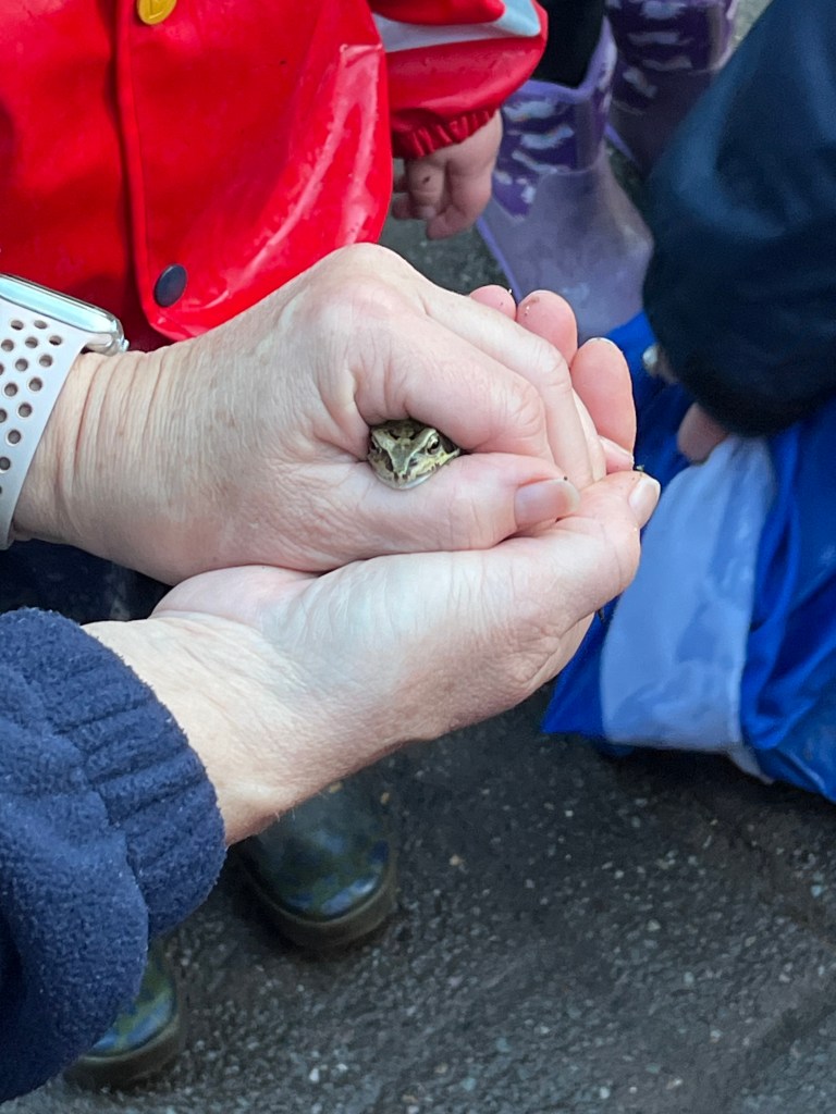 We took a walk around the woods today to see some of the damage that Storm Eowyn caused. We saw that many trees had fallen down and some of the places we like to play now look very different. It was hard work walking around the fallen trees. We had to keep looking all around and up above us to make sure we were still safe.