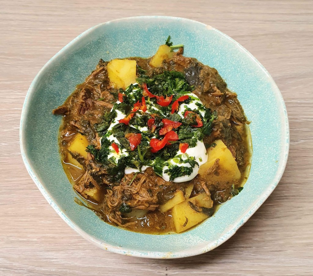 (using potatoes, spring onions, spinach, tomatoes, fresh ginger, fresh coriander from the Community Larder)